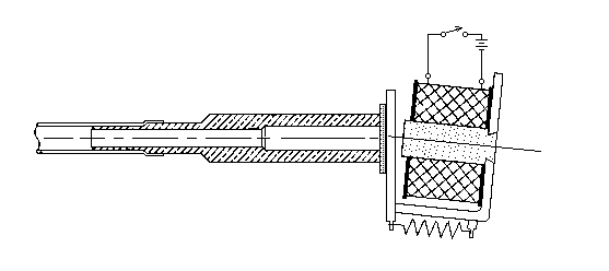 In order to reduce the switching noise, a thin foil of copper (not shown in the sketch) was glued to the inner side of the armature, where it made contact with the core. Other materials were tested at this point, which were much more effective in fighting the clicking noise, but only this (conducting) copper showed no sticking effects after longer periods of continuous operation.